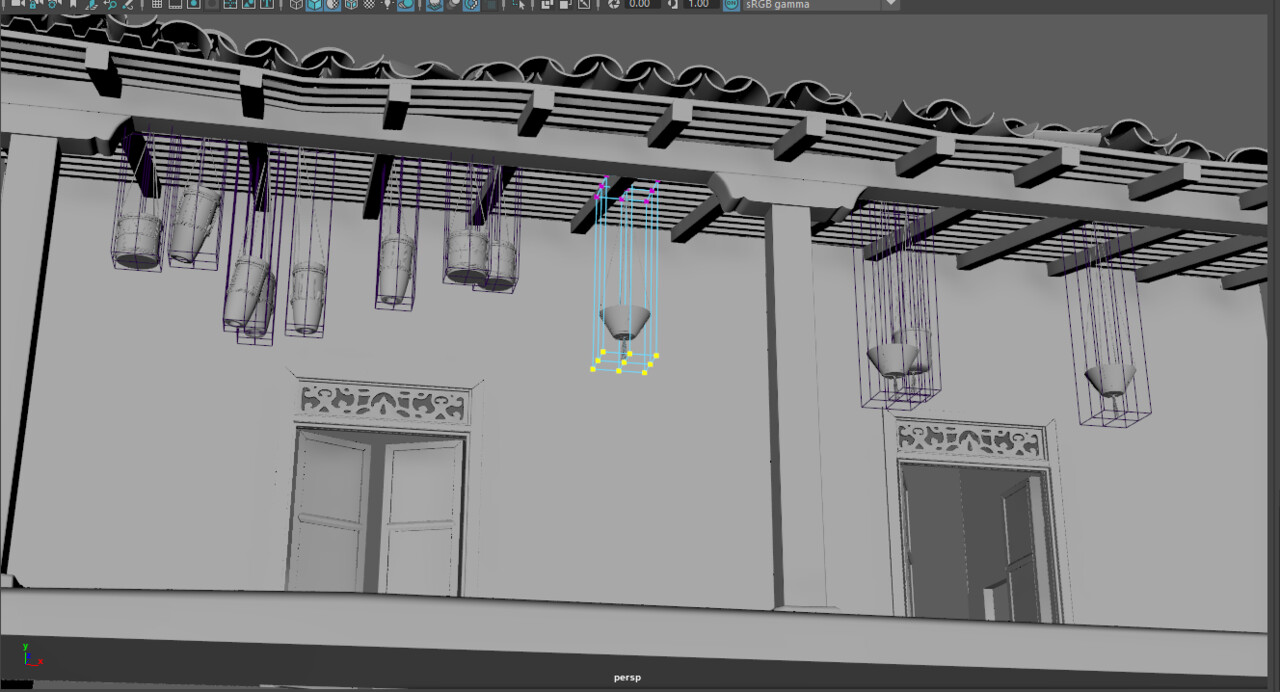 I started to do some animation on the hanging pots and drums, using lattice deformers and the graph editor: