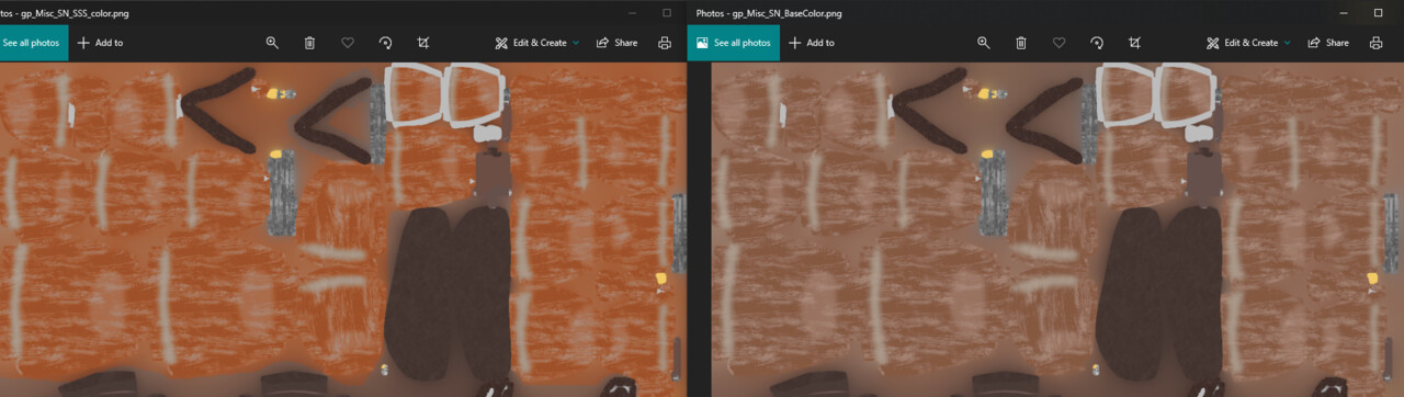 Besides using transmission, using a subsurface color map helped achieve more of a fleshy look. Here I have the SSS color map vs the Base Color Map for the fingernails: